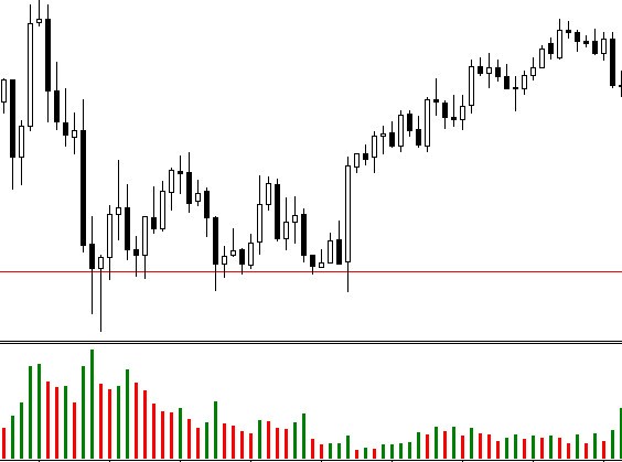 После этого индикатор появляется на графике и трейдеру можно работать с ним. Обозначения красного цвета обычного говорят о повышении количества торговых операций — о формировании восходящего тренда. Белый столбец означает, что свеча сформировалась в нисходящий тренд, хотя объём рынка всё остаётся достаточно большим.
